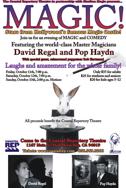 Pop Haydn and David Regal will be appearing October 11, 12, 13th at the Coastal Repertory Theater, 1167 Main St., Half Moon Bay, CA 94019. All proceeds benefit the Coastal Repertory Theater.